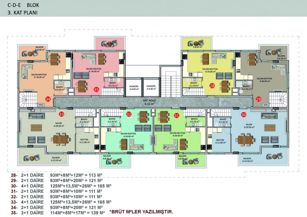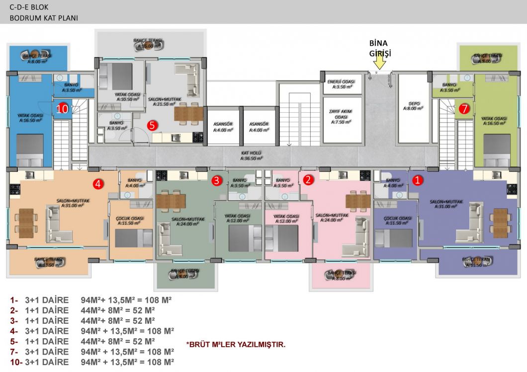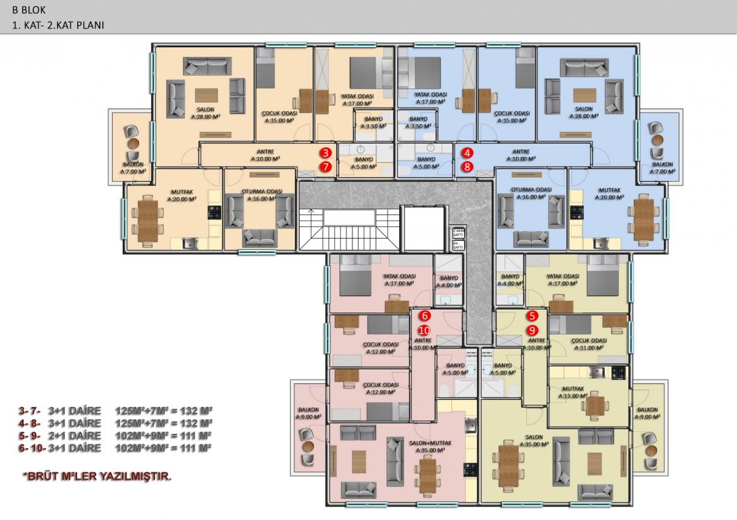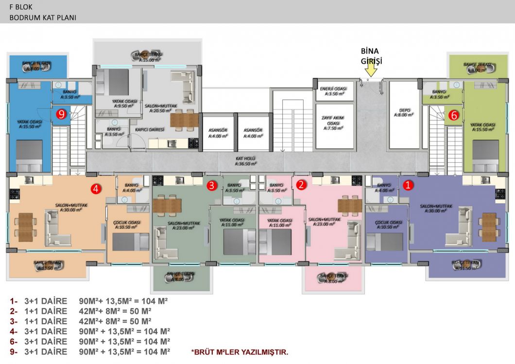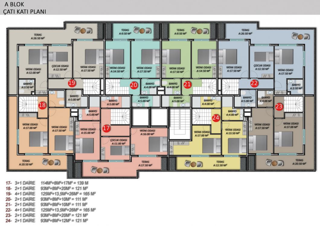 The complex will consist of six 4-storey residential blocks, 180 apartments with different layouts and area from 50 m2 to 205 m2. There is a wide selection of one bedroom apartments; comfortable and spacious two-bedroom apartments, luxurious two-story duplexes with two and three bedrooms. Ground floor duplexes with garden access, three bedroom apartments with separate kitchens.We present to your attention two furnished 1+1 apartments, each 55 m², on the second and third floors. They are for sale as shown in the photos.