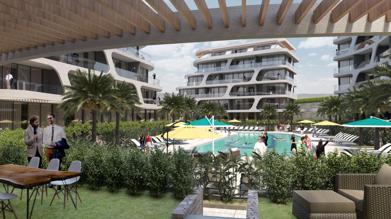 Taloyhtiössä on asuntoja yhteensä 64, aina yhden makuuhuoneen asunnoista 4 makuuhuoneen kattohuoneistoihin. Rakennuksia on yhteensä viisi, ja rakentamisessa on käytetty ensiluokkaisia materiaaleja ja asunnot on suunniteltu ajatuksen kanssa viimeistä yksityiskohtaa myöten. Kaikissa asunnoissa on aurinkoiset terassit, jotka joissakin asunnoissa ovat maaterasseja sijaiten siis maan tasalla. Rakennukset on sijoitettu niin, että altaalle ja puutarhaan paistaa aurinko aamusta iltaan. Näissä asunnoissa voit asua tai lomailla ympäri vuoden, asunnot ovat sopivia siis myös lämpimän ja rauhallisen talviloman viettoon. Yhteiskäytössä on sisäuima-allas sekä aikuisille että lapsille, kuntosali, biljardi, sauna, hamam, poreallas sekä kahvila. Ulkoalueilla on iso allasalue, jossa on allas sekä lapsille että aikuisille, aurinkotuoleja ja -varjoja. Pysäköintitilaa on myös runsaasti.