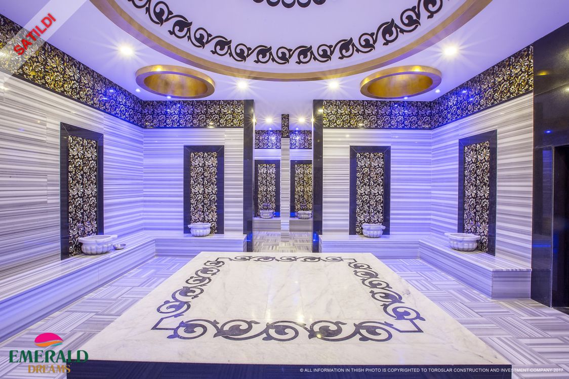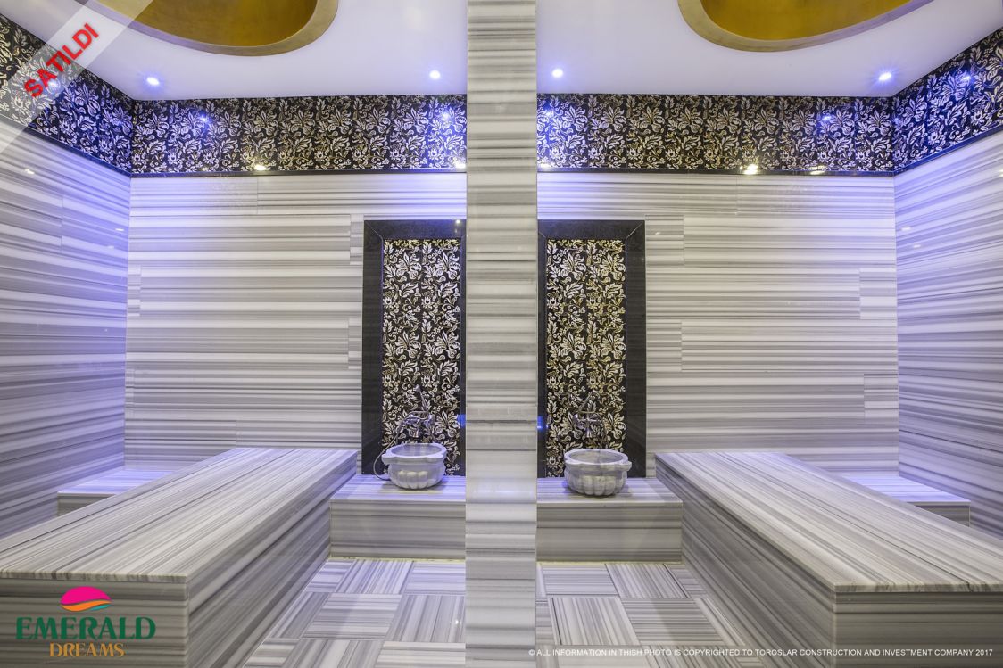 Emerald Dreams en mängd faciliteter som en stor utomhuspool, avskild poolområde med vattenrutschbanor, vacker spa-område, där du kan hitta t.ex. Turkiskt bad (hamam), bastu, fitness, inomhuspool också en underjordisk parkering i Emerald Dreams och mycket mer.